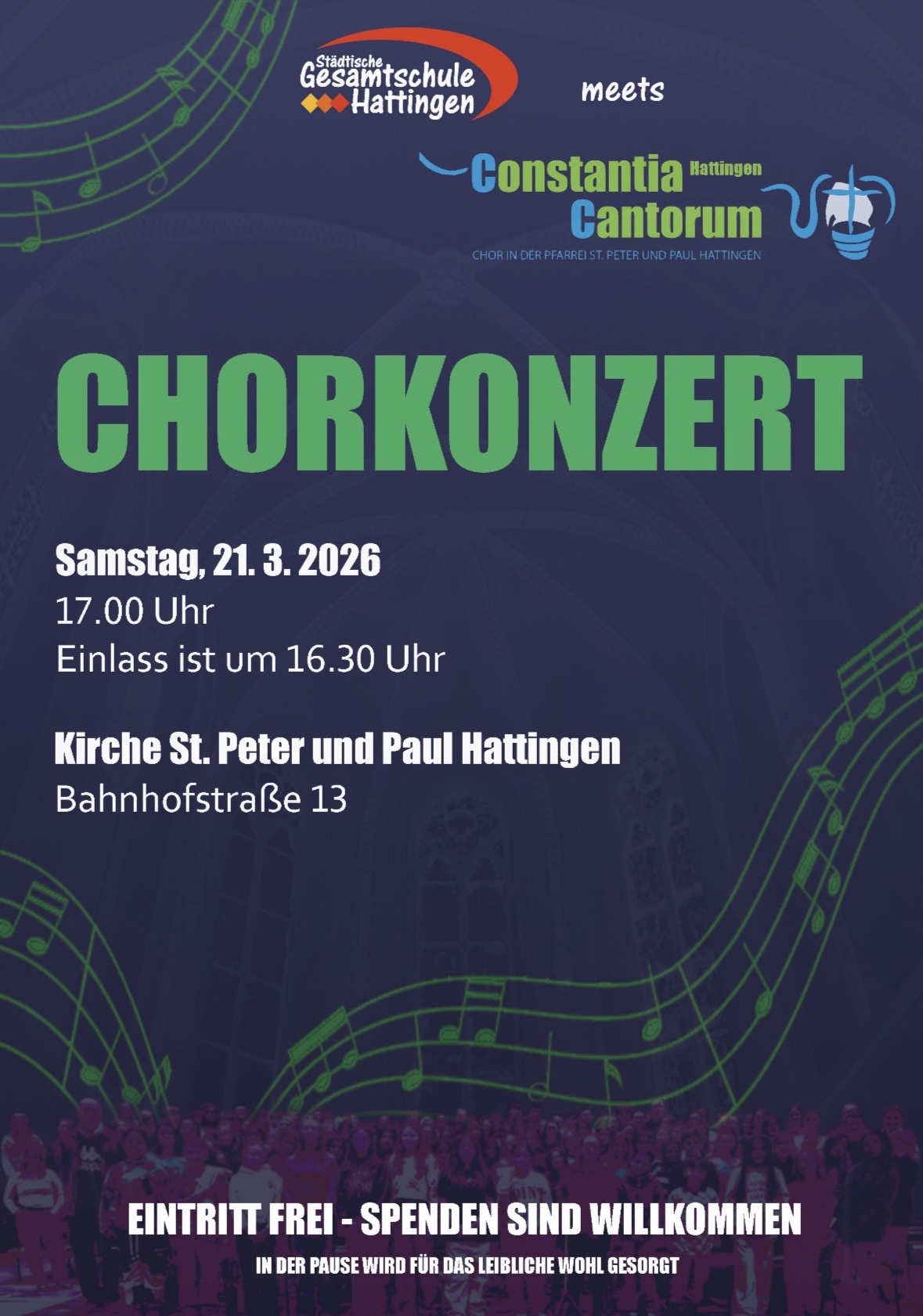 Am Samstag, den  21.03.2026 findet um 17:00 Uhr unser großes Chorkonzert in der Kirche St. Peter und Paul in Hattingen statt!